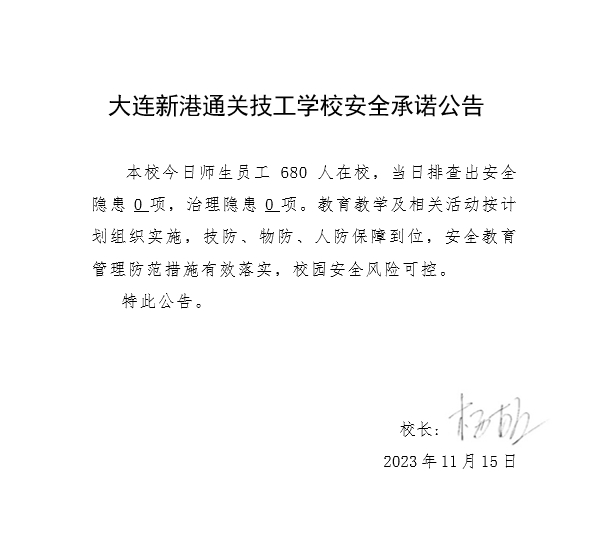 大连新港通关技工学校安全通告(2023年11月15日)