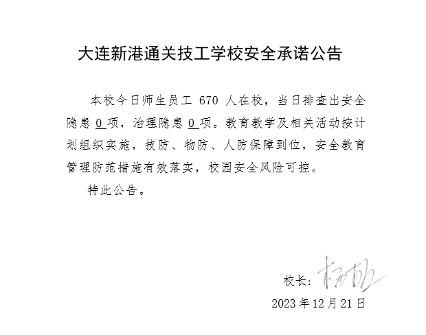 大连新港通关技工学校安全通告(2023年12月21日)
