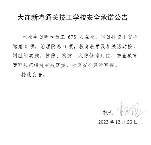 大连新港通关技工学校安全通告(2023年12月26日)
