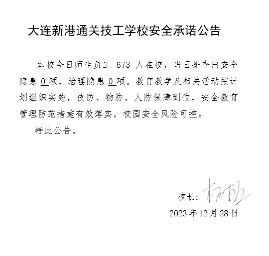 大连新港通关技工学校安全通告(2023年12月28日)