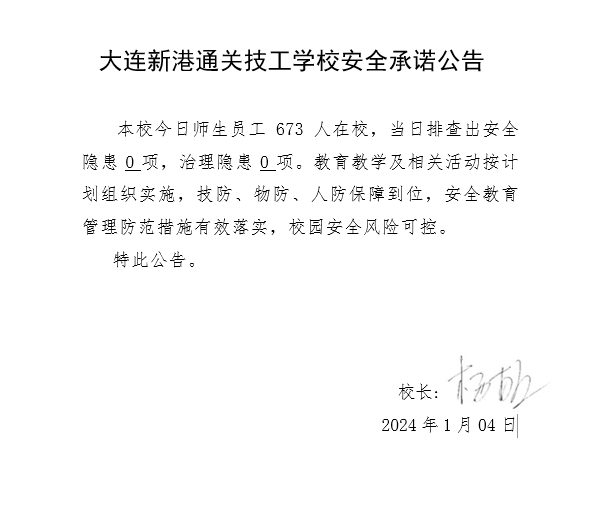 大连新港通关技工学校安全通告(2024年1月04日)