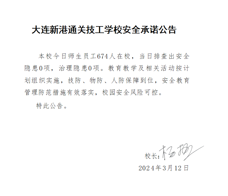 大连新港通关技工学校安全通告(2024年3月12日)