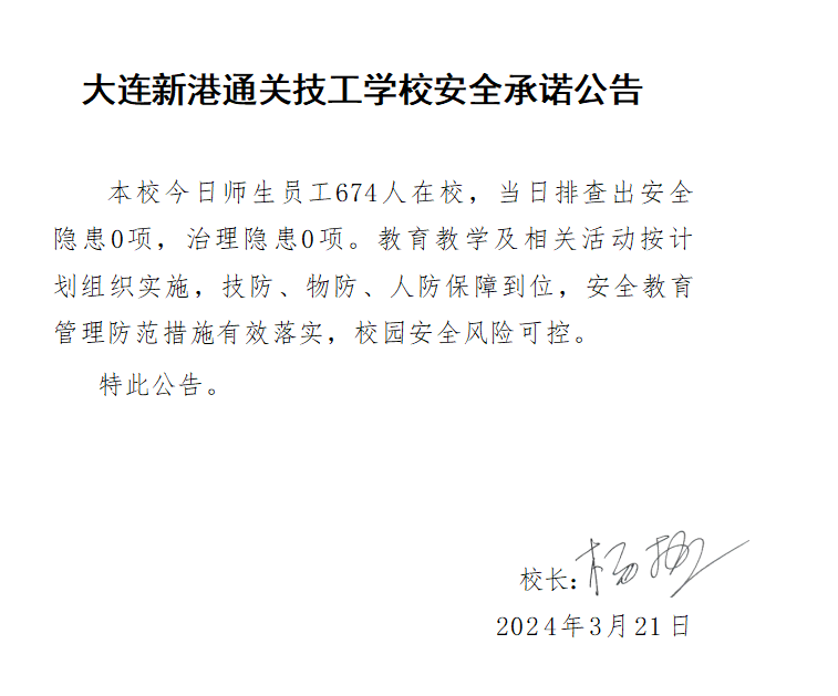 大连新港通关技工学校安全通告(2024年3月21日)