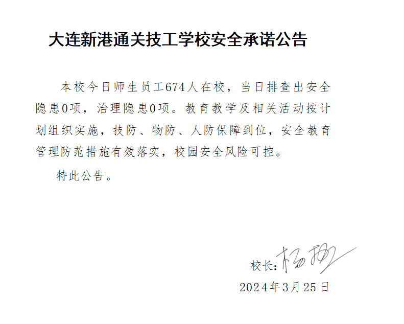 大连新港通关技工学校安全通告(2024年3月25日)