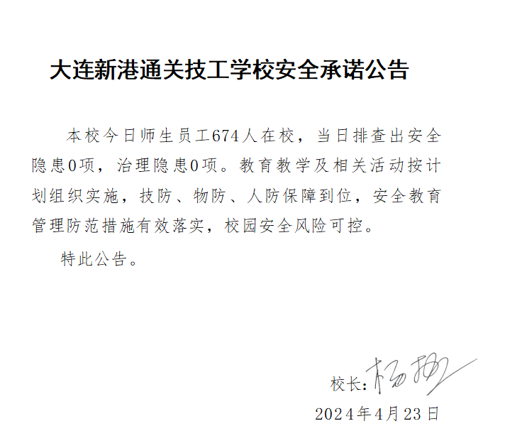 大连新港通关技工学校安全通告(2024年4月23日)