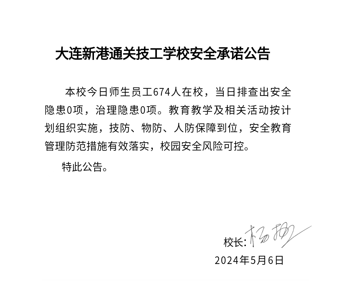 大连新港通关技工学校安全通告(2024年5月6日)
