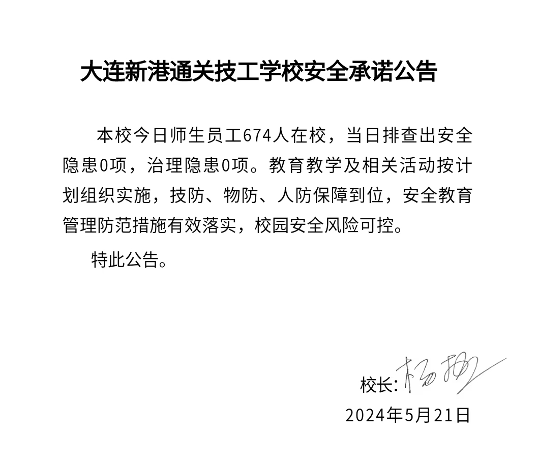大连新港通关技工学校安全通告(2024年5月21日)