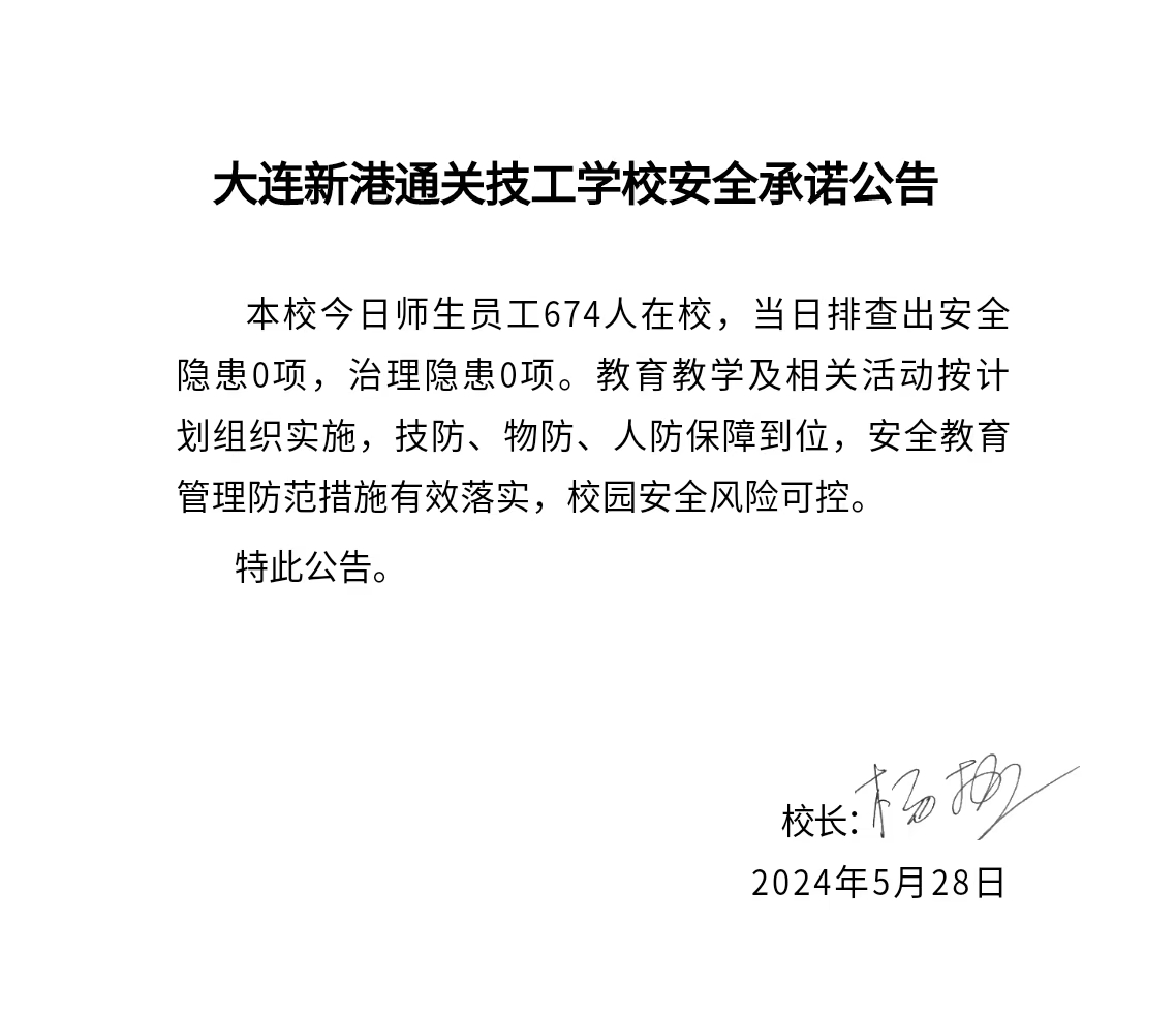 大连新港通关技工学校安全通告(2024年5月28日)
