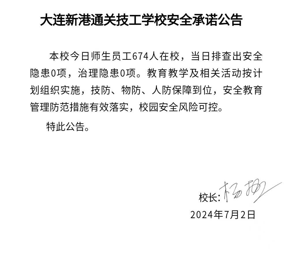 大连新港通关技工学校安全通告(2024年7月2日)