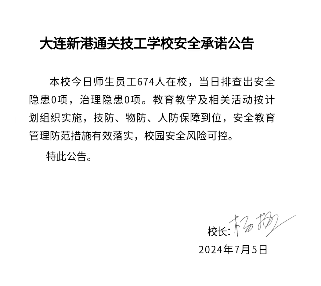 大连新港通关技工学校安全通告(2024年7月4日)