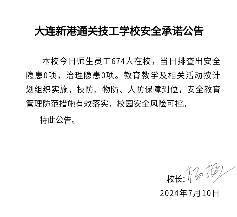 大连新港通关技工学校安全通告(2024年7月10日)