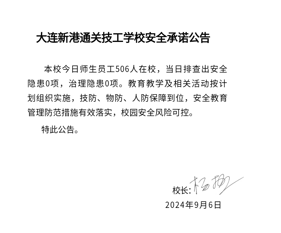 大连新港通关技工学校安全通告(2024年9月6日)