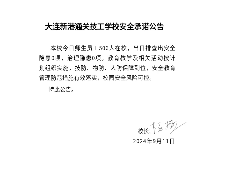大连新港通关技工学校安全通告(2024年9月11日)