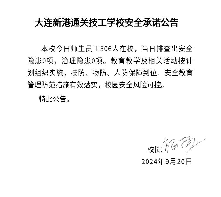 大连新港通关技工学校安全通告(2024年9月20日)