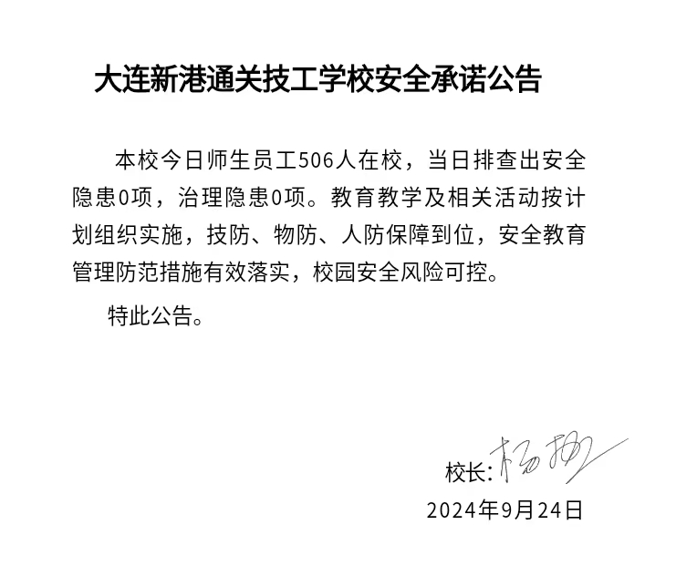 大连新港通关技工学校安全通告(2024年9月24日)