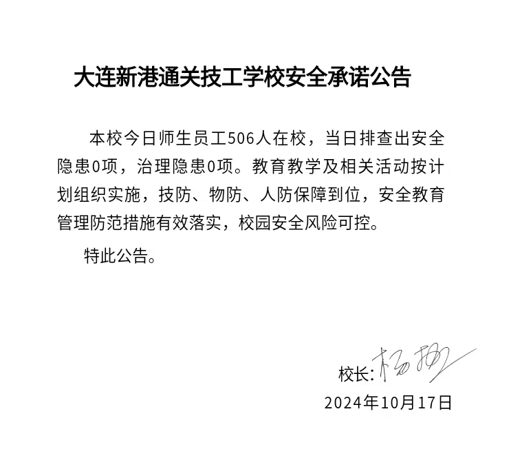大连新港通关技工学校安全通告(2024年10月17日)