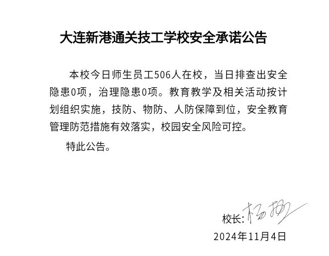 大连新港通关技工学校安全通告(2024年11月4日)