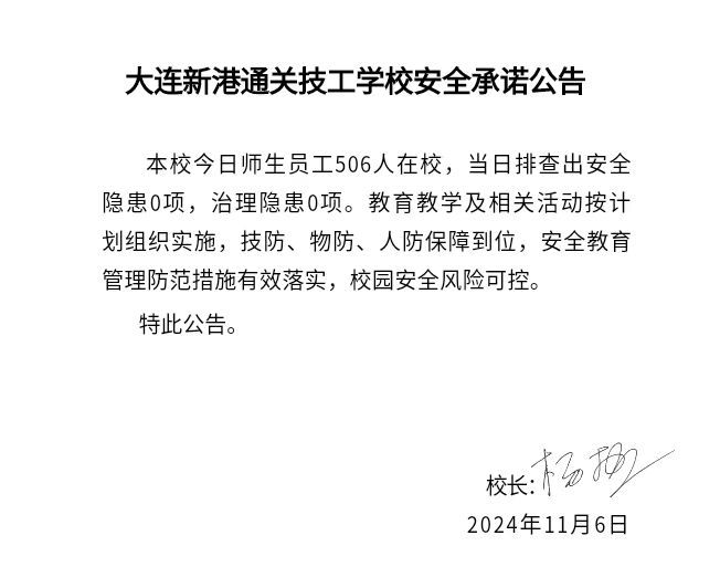 大连新港通关技工学校安全通告(2024年11月6日)