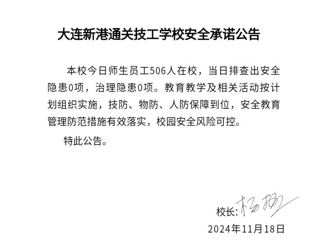 大连新港通关技工学校安全通告(2024年11月18日)