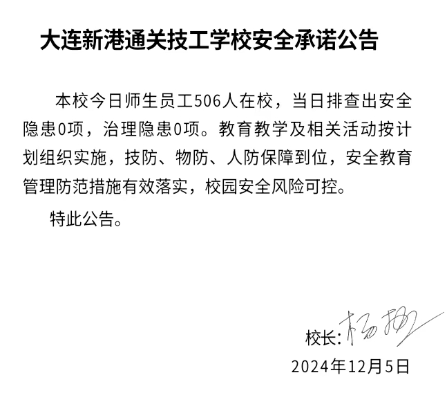 大连新港通关技工学校安全通告(2024年12月4日)