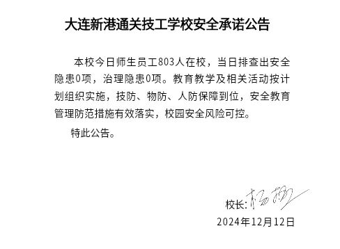 大连新港通关技工学校安全通告(2024年12月12日)