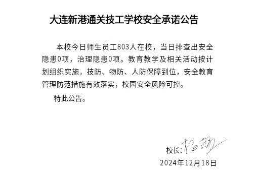 大连新港通关技工学校安全通告(2024年12月18日)