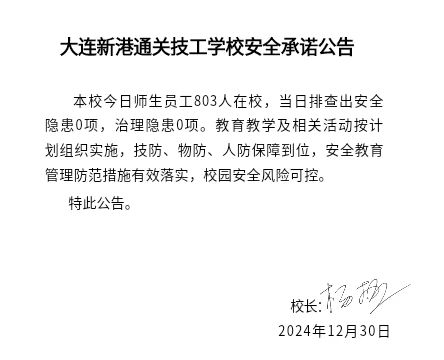 大连新港通关技工学校安全通告(2024年12月31日)