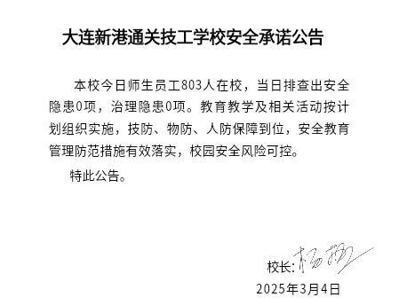 大连新港通关技工学校安全通告(2025年3月4日