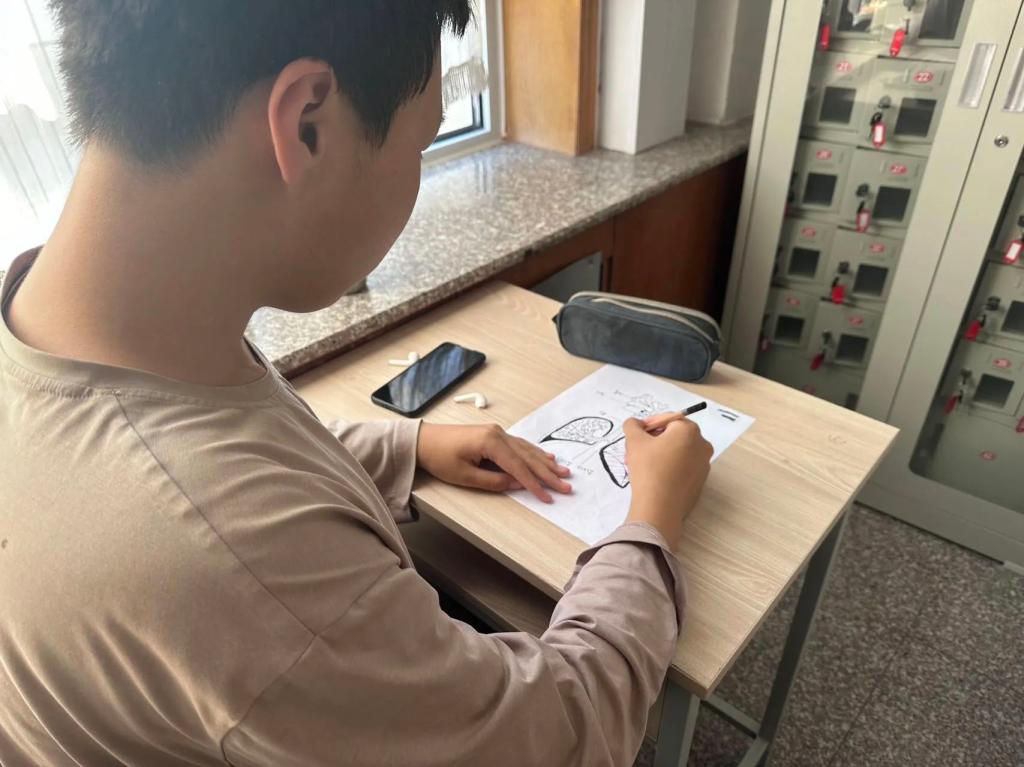 决赛在庄严而富有学术氛围的1号楼216室举行,比赛环境与高水平赛事的契合度极高,达到了90%的匹配度。为了确保比赛的公平性和挑战性,我们采取了现场抽签决定绘图内容的独特方式。选手们需要面对头、手骨、心脏、运动系统筹复杂而精细的人体结构进行描绘,他们需要根据抽取的部位,通过精细的解剖绘图,展现其内部的复杂结构和精妙之处。这一赛题不仅考验了选手们的解剖学知识,更挑战了他们的绘图技艺和耐心。