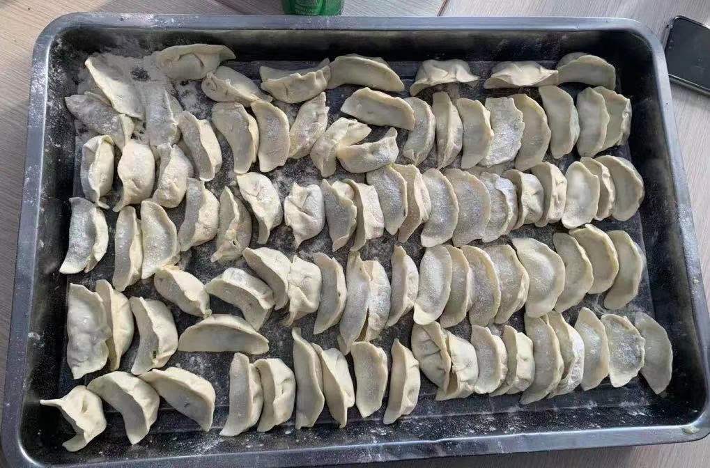 期间,同学们的热情很高,随着同学们的努力,各式各样的饺子出来了,有圆的、有长的、有尖的、有扁的,千奇百怪,不会包的向会包的学习,渐渐也能熟练地包出来漂亮的饺子,大家都有说有笑,分享包饺子的经验,场面十分热闹。