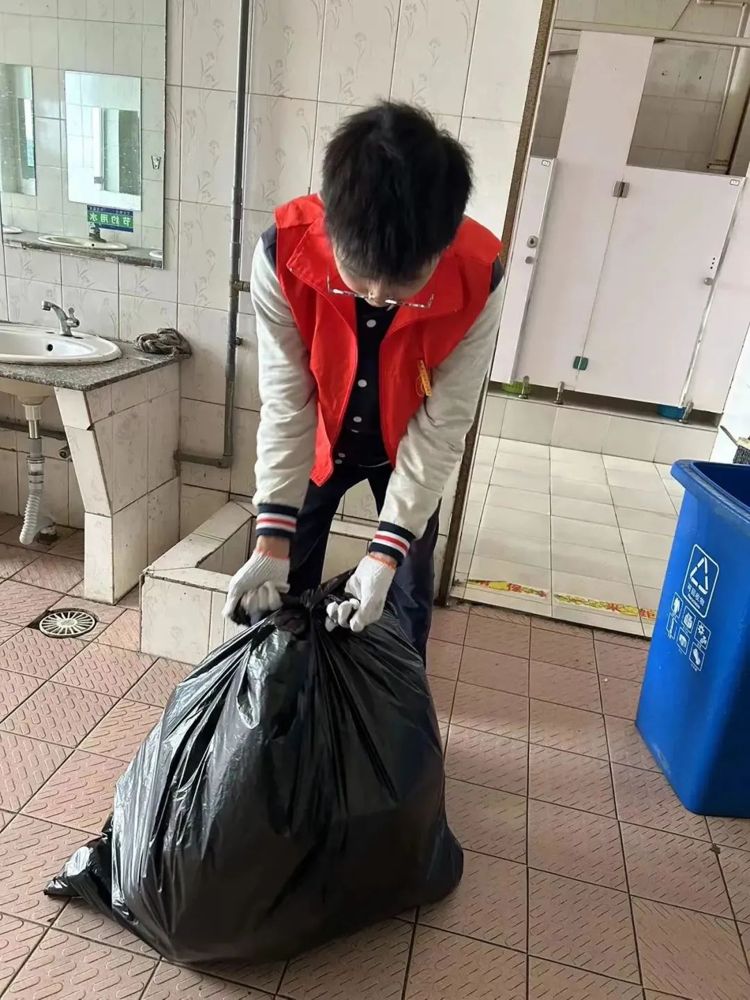 活动过程中,志愿者们身穿“红马甲”,备上手套、口罩等防护用品以及必要的清洁工具,有序地开展清洁活动,对教学楼内外的纸巾、烟头、食品袋等各种生活垃圾进行清理。整个活动在融洽和谐的氛围中进行,经过志愿者地毯式搜索,校园的垃圾被清理得干干净净,周边环境也变得焕然一新。